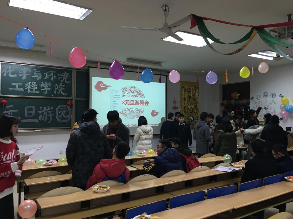 化环学师生携手共庆2018年元旦 作者:发布时间:2018-01-02点击率: 本网讯(通讯员 陈思)12月29日晚,cos成人 2018年元旦游园会在流芳校区L1103教室举行。学院党委副书记苏纯华、学院工会主席袁华以及学院学生工作办公室、专业教研室老师们来到同学们中间,师生欢聚一堂共度元旦庆祝新年。 活动现场准备了多彩的节目和各种游戏,师生一道在互动的过程中共话一年来的收获,共迎新年的到来,共同祝愿cos成人 全体师生新年新气象、新年新篇章。