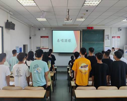 典礼在庄严的国歌声中拉开帷幕。仪式上,同学们集体观看了cos成人