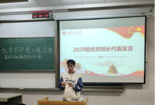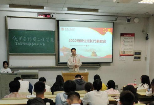 来自2022级应用化学05班新生班长代表吴祺昊和2022级环境工程03班新生团支书代表敖玉婷分别分享了他们入学以来开展工作的经历与心得,并对未来的工作做出了展望。