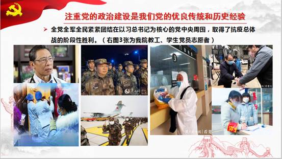 教工党员王明玺、邱心泓、张华丽、吴汉军、张慧等,学生党员赵亚军、文明烜、吴雨溪、李泽艳、罗艳萍等,在疫情期间的战疫故事,让大家同悟初心。