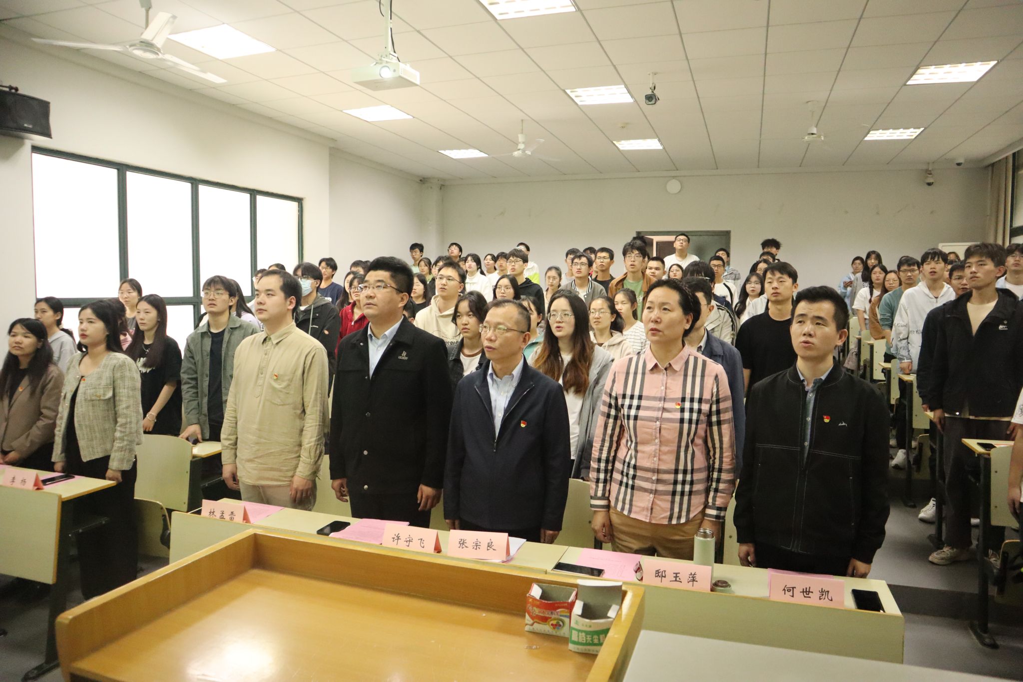 典礼在国际歌的歌声中结束。会后第72期入党积极分子暨第14期发展对象培训班全体学员集中观看《榜样的力量》专题节目。(审稿 张宗良)