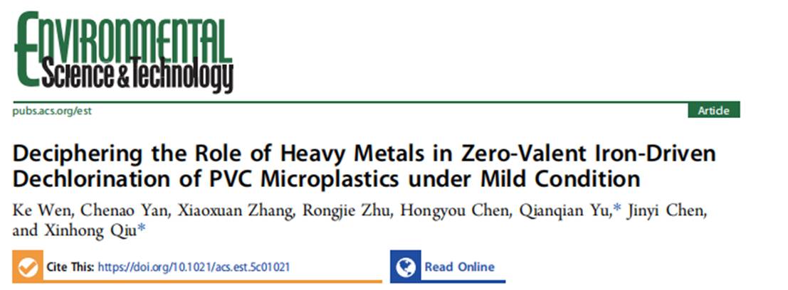 Deciphering the Role of Heavy Metals in Zero-Valent Iron-Driven Dechlorination of PVC Microplastics under Mild Condition. Environ. Sci. Technol. 2025, DOI: //doi.org/10.1021/acs.est.5c01021