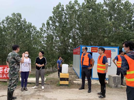 党委书记郭昕、院长余军霞、院长助理张华丽等一行,驱车前往武金堤看望正在参与执行巡堤查险任务的学院防汛一线工作人员。