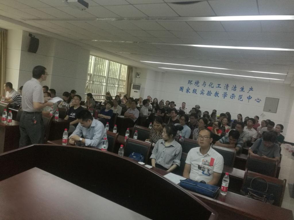 在流芳校区国家级环境与化工清洁生产实验教学示范中心1101报告厅召开新学期教职工大会,学院全体教职工参加大会。会议由学院党委书记刘汉红主持。