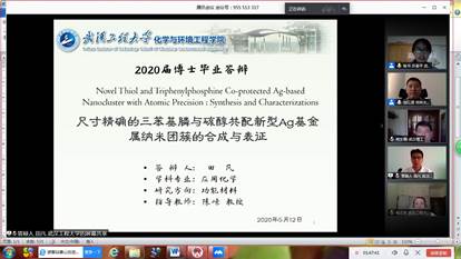 2020届博士毕业答辩如期开展,陈嵘教授课题组应用化学专业博士生田凡与刘琼,分别使用在线会议的方式,在家顺利通过博士学位答辩,其中,田凡是武工大首例“本硕博”一体化培养博士生。