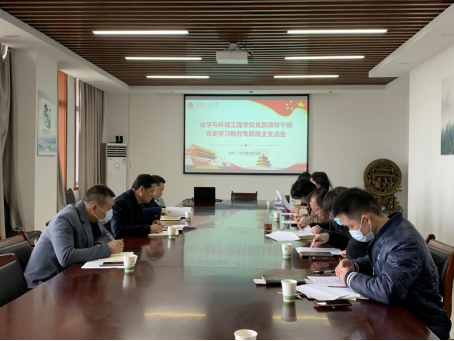 在化工大楼704会议室召开学院2021年度党员领导干部党史学习教育专题民主生活会。校党史学习教育第二指导督查组组长、校长王存文,指导督查组成员组织部副部长杨海波、校团委副书记邓欢到会指导。学院领导班子全体成员参加会议,学院办公室主任、党务干事列席会议。会议由学院党委书记张宗良主持。