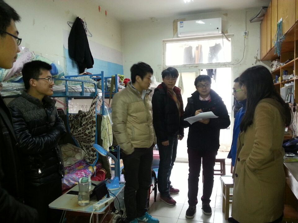 院领导仔细询问同学们假期生活学习情况、到校情况以及宿舍的安全、卫生状况。通过检查,绝大部分同学都能按照学校的要求按时返校,极少数同学由于生病等特殊原因没能按时到校,但对于没买到车票和其他没有特殊情况未按时到校的学生,学院为了严明纪律将给予相应处理。针对检查中发现的个别宿舍安全、卫生、防盗意识等问题,学院领导对学生进行了教育,提醒学生进一步增强安全防范意识,自觉做好防火防盗、安全用电及宿舍卫生工作,以饱满的热情投入到新学期学习和生活当中。陈院长对学生上学期考试成绩进行了详细的分析,在走访的过程中,对成绩不理想,学习有困难的学生进行鼓励和指导。通过此次走访,学院领导及时掌握了学生开学前的思想动态,确保新学期学生工作平稳有序开展。
