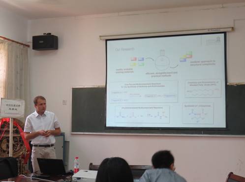 Manolikakes博士强调了新型的有机合成方法在有机合成中的重要性,并且向师生们解释有机化学的各种优秀结果都是要靠有机化学家们不断的努力地创新性的尝试获得的。Manolikakes博士的整场学术报告图文并茂,生动有趣,使到会师生受益匪浅。学术报告结束后,Manolikakes博士热情的回答了在场师生提出的学术问题,并分享了自己从事学术研究的心得体会。