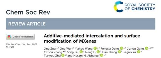 MXenes是一类新兴的二维纳米材料,制备出具有特定表面官能团、高反应活性、高稳定性的MXenes对这类材料在储能、催化、传感、电磁屏蔽、电子与光子学、生命科学等领域的应用具有重要意义。然而,这类材料却很难制备,因为大多数MXenes是通过刻蚀陶瓷相而获得的,其中大量金属原子暴露在表面,其他离子不受控制地嵌入其本体中。暴露的金属原子和嵌入的离子在热力学上是不稳定的,易与微量氧或含氧基团发生反应,形成相应的金属氧化物或发生化学降解,导致其活性急剧下降,失去其优良的理化性质,为此,研究者们通过一系列策略来提高MXenes材料的活性和稳定性。基于此,邹菁/江吉周教授团队在梳理和归纳了近年来MXenes制备和改性等方面研究工作的基础之上,创造性地提出了以“绿色环保实验”为宗旨,在MXenes的刻蚀、插层和表面官能团的化学改性过程中,引入一些协同添加剂可制备出高稳定性、高活性的MXenes材料。同时凝练了协同添加剂在MXenes基材料插层和化学改性过程中的作用机制,讨论了现有的协同添加剂在刻蚀、插层和改性方面的局限性、存在的问题和面临的挑战。该工作不仅是对MXenes基材料插层和化学改性的归纳与补充,而且为高性能二维材料的设计、制备提供了新的思路和新的途径。