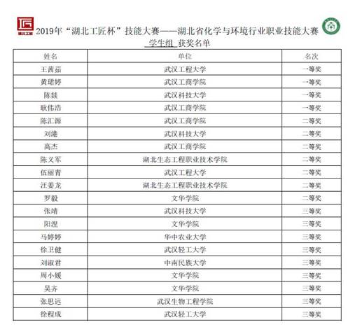我校学生继写“湖北工匠杯”技能大赛辉煌再夺冠军 (通讯员 李亮)为“树立生态环保理念,宣传生态环保知识,选拔生态环保人才”,2019 年“湖北工匠杯”技能大赛——湖北省化学与环境行业职业技能大赛水处理技术竞赛11月9日至11月10日成功举行。本次大赛为省级一类大赛,由湖北省生态环境厅、省人力资源和社会保障厅联合主办。水处理技术项目比赛共吸引了来自华中科技大学、华中农业大学、cos成人 、中南民族大学、武汉轻工业大学、江汉大学和武汉工商学院等15所高校,以及武汉华测检测技术有限公司、黄鹤楼酒业和湖北相融检测有限公司等15家企业的数百名选手参赛。 我校cos成人 派出4名学生组成的专业队参加比赛,王营茹、李亮老师随队指导。继cos成人 学生(应用化学专业)上周在“湖北工匠杯”出色表现后,再接再厉,在“湖北工匠杯”——水处理技术技能比拼中再创辉煌。经过两天激烈的角逐,王茜茹同学获得此次大赛一等奖(决赛成绩第一),伍丽青同学获得二等奖,充分体现了我校学子的专业水平和精神风采。 审稿人:郭昕
