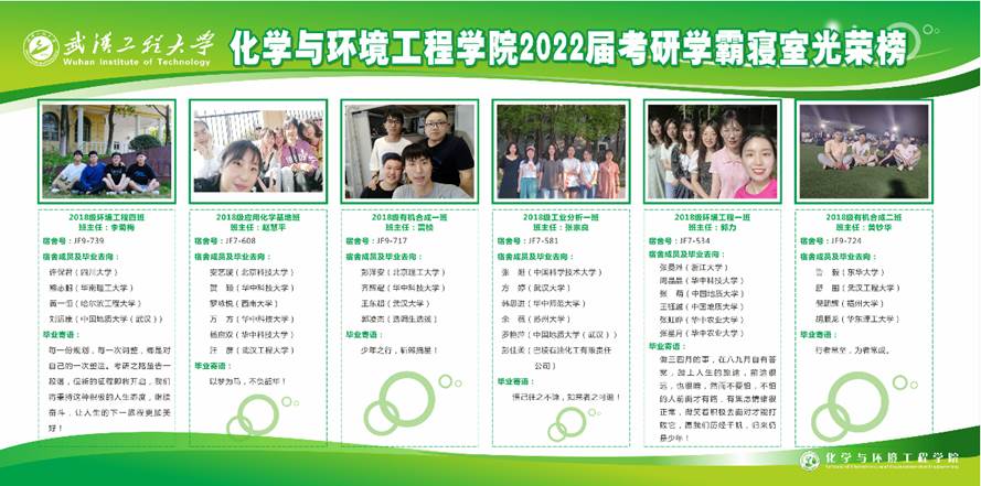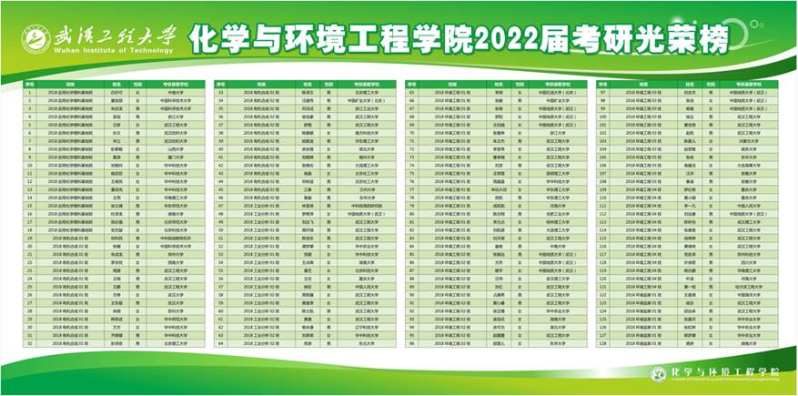 2022届285名毕业生中,有128人继续攻读硕士研究生,2018级十个班级中,有八个班级的录取率超过40%,其中2018级应用化学理科基地班和2018级环境工程一班录取率突破60%,分别为66.67%和65.52%,学院考研总录取率达44.91%,较往年的42.42%再次提高了2.49个百分点。