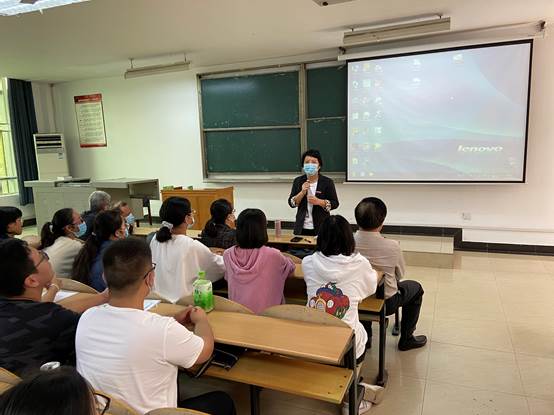 会议的第一个环节是专业认知教育。首先,应用化学教研室副主任奚江波老师对2020级本科新生的到来表示热烈欢迎,并向全体新生全面介绍了应用化学专业的发展历程、师资力量、培养模式、专业特色和专业优势等,并围绕“应用化学专业主要学什么?”、“应用化学专业毕业生可以干什么?”这两个问题,与在场的新生进行了交流分享。随后,院长余军霞教授进一步介绍了应用化学专业的培养方向和发展前景,引导同学们增强专业认同感和自豪感。最后,郭昕书记寄语同学们应树立明确的奋斗目标,成为有责任有担当的新时代优秀大学生,同时也希望同学们注重加强体育锻炼,增进身心健康。