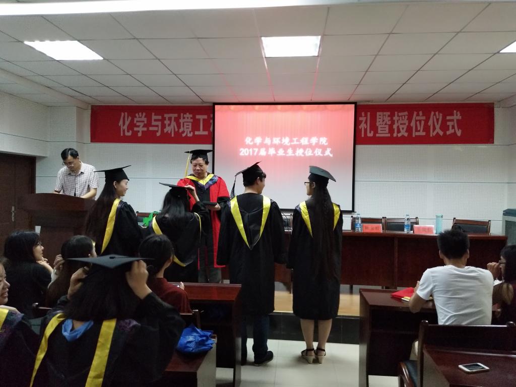 2017届毕业典礼暨授位仪式在流芳校区1号实验楼1101会议室隆重举行。学院领导刘汉红、董志兵、王营茹、学校教学名师袁华出席,学院学生工作办公室、教学工作办公室老师与2017届毕业生共同参加。学院党委副书记苏纯华主持毕业典礼暨授位仪式。