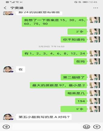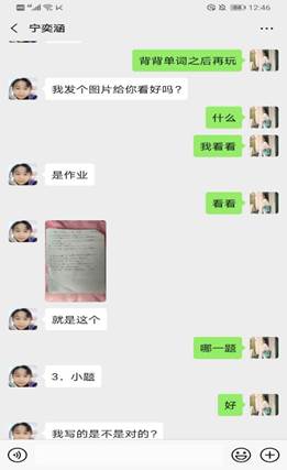 第一次电话聊天,感觉这个小朋友很腼腆,熟悉之后慢慢发现她很活泼。我主要帮助她辅导作业,复习。考虑到特殊时期,辅导形式主要通过微信进行,我会给她发语音,视频或者图片,文字等多种方式进行辅导功课。同时考虑她的课程安排,我结合她上网课的时间来给她安排辅导时间和课程。