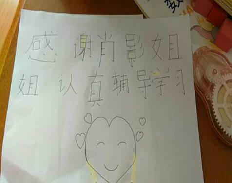 辅导过程中,我慢慢发现她很聪明,也很喜欢听我辅导。记得有一次,她邀请我去她家吃饭,告诉我她家买了很多零食,她藏了起来,不让弟弟吃,说要等我去了一起分享。我看到她越来越懂事,懂得了分享与感恩,我特别欣慰,感觉做志愿是一件非常有意义的事。我时常给她父母汇报小朋友的学习情况,还提供一些教育孩子的建议,她父母向我表示感谢。小朋友还给我画了一幅画,送给我。