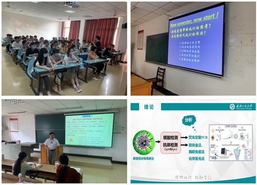 课堂上,在做好安全防护的前提下,学院老师们纷纷采取各类新颖的授课内容和方式,结合疫情和时政热点,将思政带入课堂。开学第一课是吸引学生的开始,也是和学生建立共情关系的重要一环,还是向学生渗透科学研究者应有的情怀和素养(课程思政)的最佳机会。
