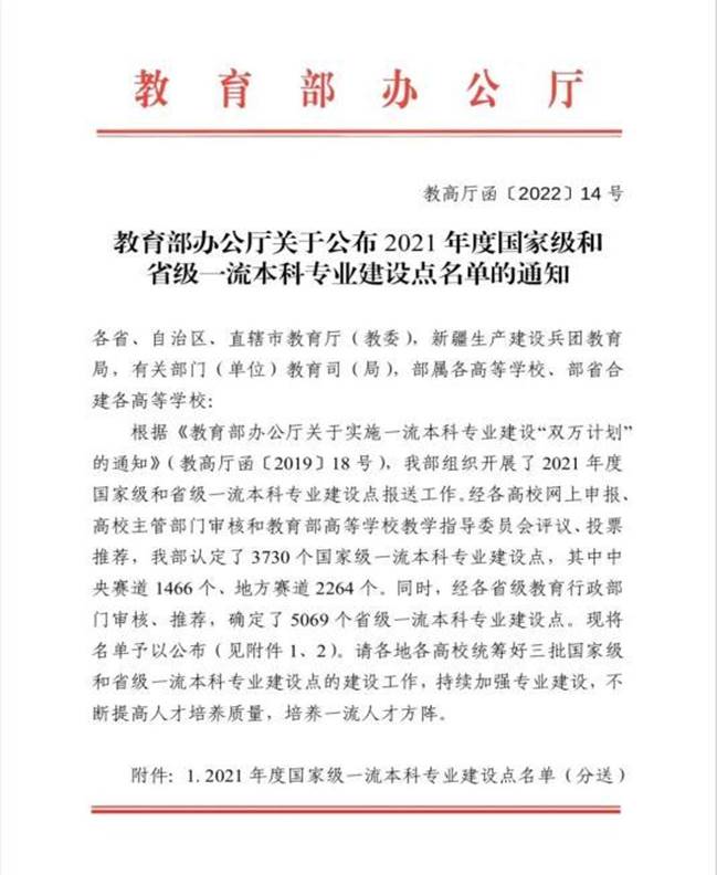 (通讯员 周旋)近日,教育部发布了《教育部办公厅关于公布2021年度国家级和省级一流本科专业建设点名单的通知》(教高厅函〔2022〕14号),我校获批2021年度国家级一流本科专业建设点6个,获批湖北省省级一流本科专业建设点6个。cos成人