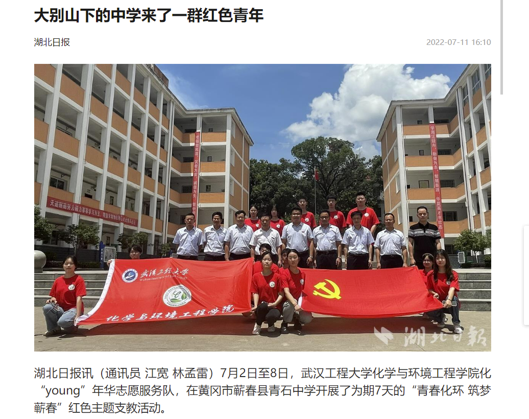化“young”年华志愿服务队,在黄冈市蕲春县青石中学开展了为期7天的“青春化环筑梦蕲春”红色主题支教活动。
