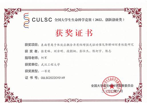 (通讯员 贾丰成)近日,由河南师范大学承办的全国大学生生命科学竞赛(2022,创新创业类)决赛落下帷幕,经网评和决赛答辩,由柯军老师指导,张曼琳同学负责(团队成员:刘岩明,段懿桐,彭仕杰,陈柯宇,陈志)的作品《表面等离子体效应耦合异质结增强光驱动催化降解四环素性能研究》在创新赛道决赛中表现优异,斩获国赛一等奖!这是cos成人