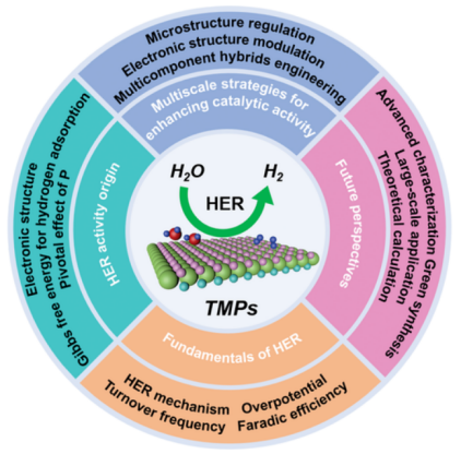 氢气由于具备无污染、可再生等特性,被认为是传统化石能源的替代品。电催化水裂解技术具有低能耗、高效率和零排放等特点,近年来在一系列制氢工艺中脱颖而出。作为水裂解的半反应,电催化析氢反应(HER)涉及多个电子转移步骤,需要额外的能量来克服动力学障碍并促进电子转移,从而产生过电位。因此,高效的HER需要能够明显促进反应动力学的电催化剂。目前,以铂族金属为代表的贵金属催化剂展现出了最先进的HER催化活性。然而,稀缺性和高昂的成本阻碍了它们的大规模应用。因此,开发经济、高效的非贵金属电催化剂具有重要意义。过渡金属磷化物(TMPs)具有丰富的储量、多变的结构、可调的组成和良好的导电性,被视为一种新兴的非贵金属电催化剂的代表性材料。然而,其HER电催化活性仍受到其固有的性能瓶颈的限制。本综述对TMPs作为新一代优良HER电催化剂的各类局限性和潜在问题进行了仔细的梳理,并根据其HER催化活性起源给出了合理的解释和相应的解决方案。同时,本文还提出了具有高度针对性的多尺度性能提升策略。此外,还概括了当前设计高效TMPs电催化剂所面临的科学性问题。最后,提出了HER研究领域面临的挑战及未来最有前景的发展方向。本综述有望为基于TMPs的 HER电催化剂的合理设计和实际应用提供一份专业性的科学指南。