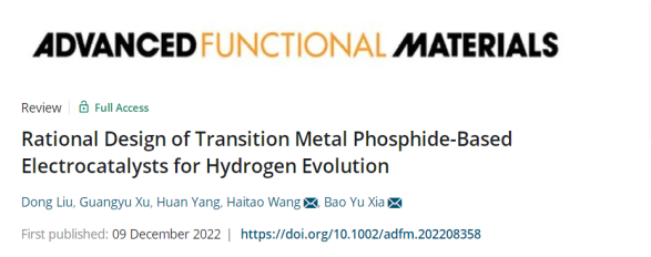 教师在国际权威期刊“Advanced Functional Materials”上发表综述论文。该论文系统地介绍了过渡金属磷化物电催化剂的合理设计及其在析氢反应中的应用,提出了该领域现存的挑战和未来可期的发展方向。相关成果以“Rational Design of Transition Metal Phosphide-Based Electrocatalysts for Hydrogen Evolution”为题在线发表,文章DOI号为10.1002/adfm.202208358。刘东副教授为论文第一作者,硕士生徐光宇为第二作者,cos成人
