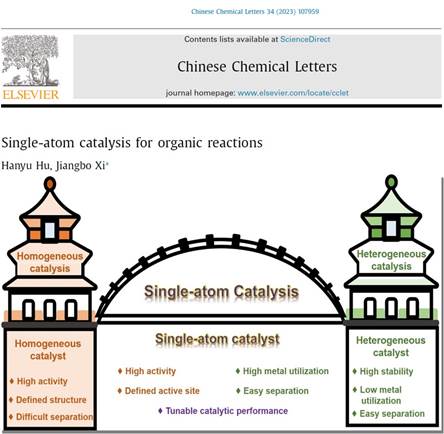 奚江波教授课题组在深入开展研究工作的同时,还密切关注本领域的研究进展。在中国“卓越行动计划”期刊Chinese Chemical Letters(影响因子为9.1)上发表了题为《Single-atom catalysis for organic reactions》的综述论文,综述了SACs的最新进展及其在有机反应(如氧化、还原、加成、偶联反应和其他有机反应)中的实际应用。在Topics in Current Chemistry期刊(影响因子8.6)上发表了题为《Performance regulation of single‑atom catalyst by modulating the microenvironment of metal sites》的综述论文,全面总结了在化学反应中单原子催化的过程-结构-性能关系,SACs的活性位点、配位结构和性能调节策略的研究进展。在上述综述中,作者对SAC的发展现状、发展趋势、未来挑战和前景进行了深入讨论。