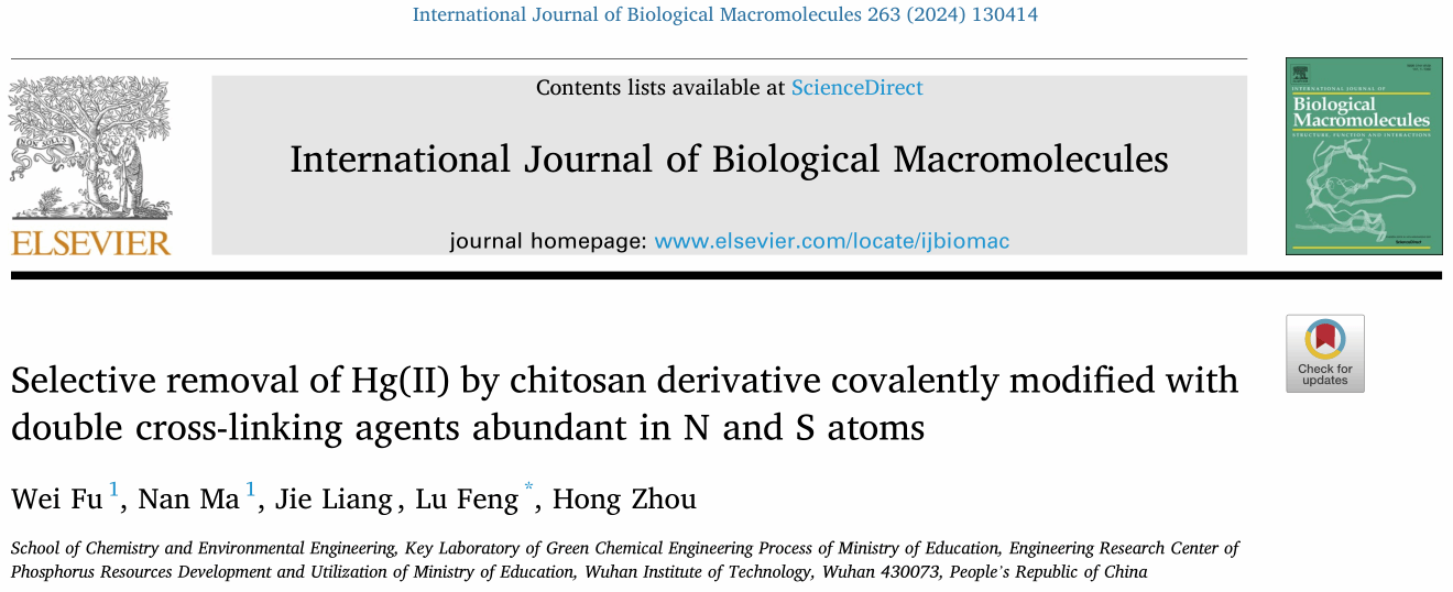 环境工程专业2021级本科生付玮以第一作者在国际知名期刊《International Journal of Biological Macromolecules》(中科院一区Top期刊,影响因子8.2)发表了题为《Selective removal of Hg(II) by chitosan derivative covalently modified with double cross-linking agents abundant in N and S atoms》的学术论文。cos成人