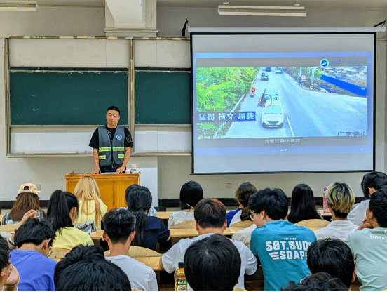 讲座中,孙利明以视频的形式,向同学们展示了交通事故的场景、造成的严重后果,进一步强化了同学们对交通安全重要性的认识。