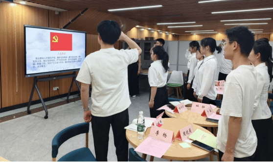 主题党日在雄壮的国歌中拉开序幕。学院研究生第一党支部赵元勋同志领誓,全体党员举起右手面向党旗,庄严地重温了入党誓词,誓言铿锵,激荡着坚定的信仰,汇聚起前行的力量。严敏和邓欢等与会领导向研究生第一党支部第二季度入党的同志们赠送了政治生日贺卡,用生动的载体、鲜活的形式进一步增强了党员意识。