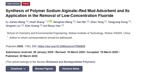 应用化学专业 2022 级本科生王佳豪以第一作者身份在高分子化学领域国际学术期刊 《Polymers》(JCR Q1区)上发表一篇题为“Synthesis of Polymer Sodium Alginate–Red Mud Adsorbent and Its Application in the Removal of Low-Concentration Fluoride” 的学术论文,cos成人