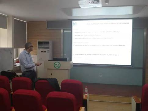 来访期间,Poisson教授为我校相关师生分别做了题为《New Prospectstoward the Synthesis of Difluoromethylated Phosphate Mimics》、《Copper MediatedDifluoromethylation Reactions》的学术报告,报告会由“湖北省教育厅有关人才计划学子”特聘教授、cos成人