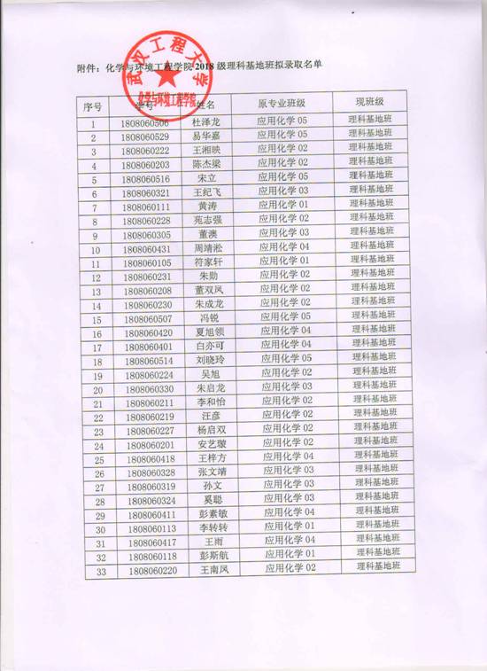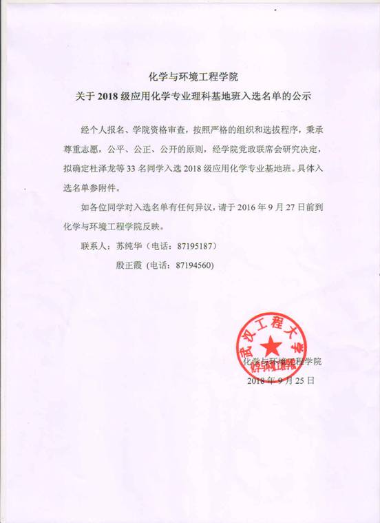 cos成人 关于2018级应用化学专业理科基地班入选名单的公示