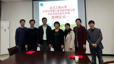 环境工程专业本科生校外导师授聘仪式”在化环院704会议室举行,国家高新技术企业珠海九通水务股份有限公司董事长张良纯,秘书李欣欣受邀参加。余军霞院长、环境工程教研室关洪亮主任、柯军副主任、明银安副教授、周旋副教授与会。