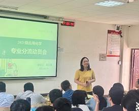 在流芳校区L2305教室召开了2021级应用化学专业方向分流宣讲会。教学副院长王营茹、应化教研室全体教师、2021级辅导员仝壮老师和2021级应化专业全体本科生参加了此次会议。会议由应化教研室奚江波老师主持。